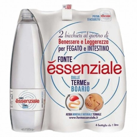 Acqua Essenziale litro Pet x 6 bottiglie dalle Terme di Boario povera di sodio e ricca di solfati e magnesio indicata per depurare il fegato e stimolare l'intestino
