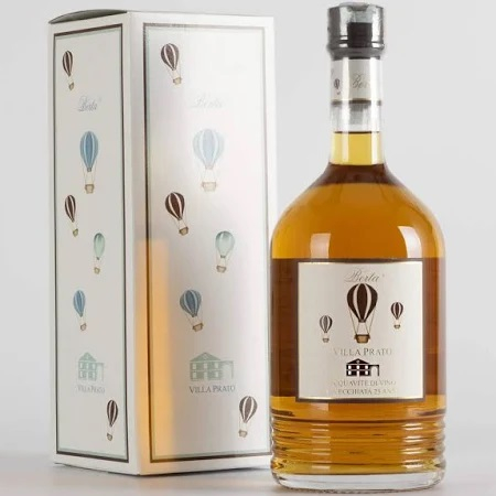 Acquavite di vino Villa Prato Berta invecchiata 25 anni cl 100 è il risultato di attente selezioni di ottimi vini invecchiati negli ultimi 25 anni in legno al gusto uno concerto di sensazioni nelle quali spicca il tabacco, il cacao, la vaniglia