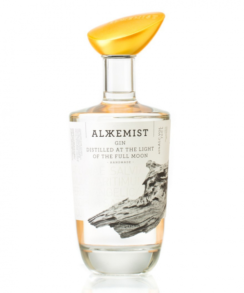 Gin Alkkemist cl 70 da una piccola distilleria spagnola contiene 21 specie botaniche tra le quali il finocchietto marino che gli conferisce l’aroma tipico delle coste mediterranee alla fine del processo viene aggiunta l'uva Moscato