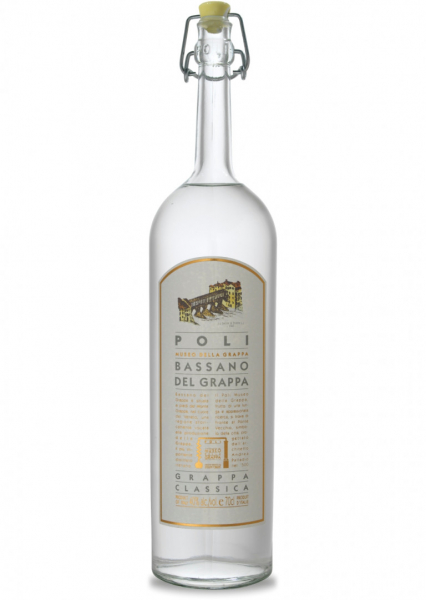 Grappa Bassano Classica Poli cl 70 da cuvée di vinacce di vitigni tipici della zona aroma fruttato di mela cotogna e prugna secca gusto armonico vivace ed elegante