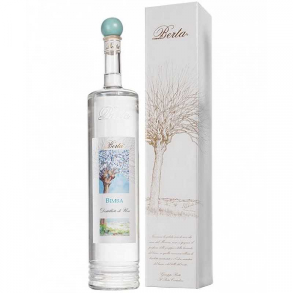 Acquavite d'Uva Bimba Distilleria Berta cl 70 selezione dei migliori mosti di uva. distillati a vapore profumo elegante armonioso sapore con vena morbida sentori di rosa e frutti di bosco selezione dei migliori mosti d'uva , sapore morbido con
