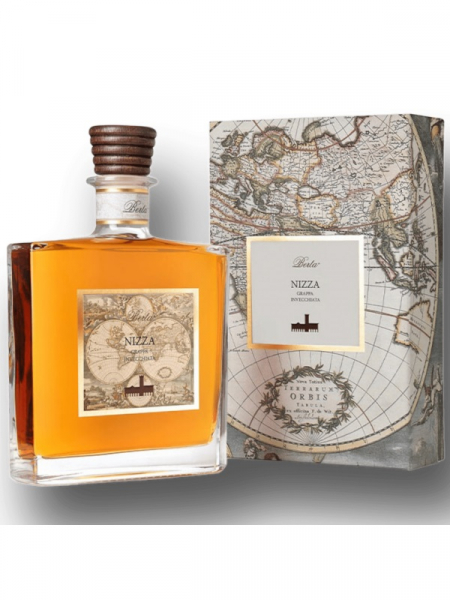 Grappa Nizza Berta cl 70 dalle colline del Monferrato e dalle vinacce di provenienza Nizza invecchia in legni diversi che le donano un gusto ricco ed avvolgente ed un profumo ampio e complesso