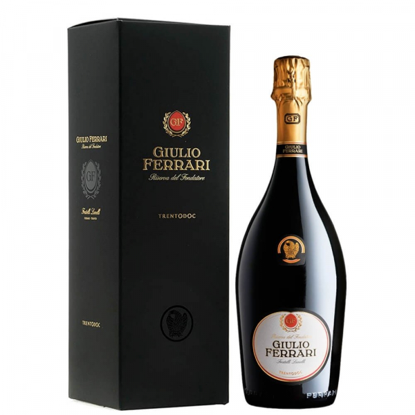 Spumante Ferrari Giulio Riserva del Fondatore 2015 cl 75 chardonnay in purezza con 10 anni di maturazione corpo cremoso e vellutato finale complesso elegante e fresco