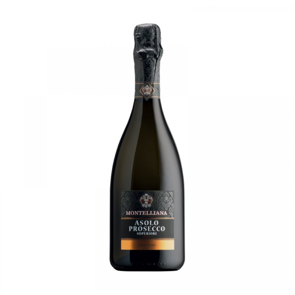 Montelliana Asolo Extrabrut cl 75 dal ridotto residuo zuccherino fine perlage gusto pieno e sapido con una spuma cremosa ed avvolgente accompagna perfettamente tutto il pasto