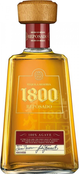 Tequila 1800 Reposado cl 70 prodotta con Agave Blu ed invecchiata in botti di rovere americano e francese per almeno 6 mesi note di caramello burroso e spezie