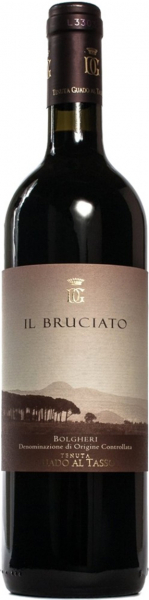 Vino Il Bruciato Bolgheri Doc cl 75 in bocca buona struttua con tannini morbidi e retrogusto gradevolmente fruttato da bere con carni rosse ed arrosto ed anatra al forno