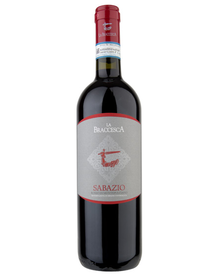 Vino Rosso di Montepulciano Sabazio cl 75 dai vitigni della Tenuta La Braccesca al naso note floreali di violetta e rosa al palato tannini setosi e piacevoli finale sapido ottimo con piatti di carni arrosto o alla brace