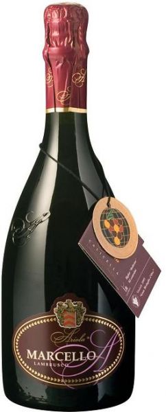 Vino Lambrusco Marcello Ariola cl 75 profumo intenso persistente fruttato ottimo con salumi anolini in brodo primi piatti bolliti stracotti piatti di pesce lavorati e rosa di parma