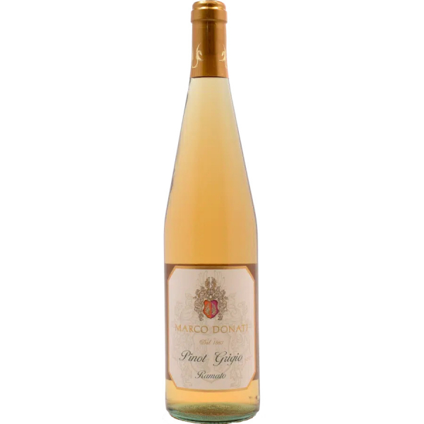 Vino Pinot Grigio Ramato Marco Donati cl 75 il bel colore ramato deriva dalla fermentazione sulle bucce gusto sapido equilibrato con sentori di frutta gialla matura adatto ad antipasti zuppe risotti piatti a base uova e carni bianche