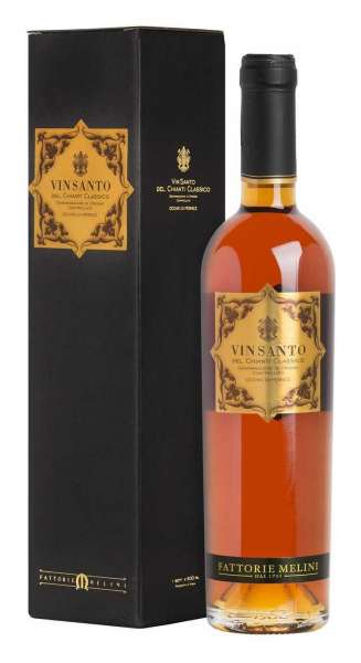 Vin Santo del Chianti Fattorie Melini cl 375 al naso ricco e concentrato con sentori di frutta rossa candita sapore pieno armonico estremamente fine e bilanciato ottimo da meditazione ed anche con la pasticceria secca