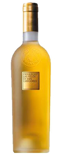 Vino Privilegio Passito Feudi San Gregorio cl 50 da uve Fiano appassite il gusto ricorda gli agrumi canditi la cannella e la buccia di pesca bianca ottimo con pasticceria e dolci con le creme