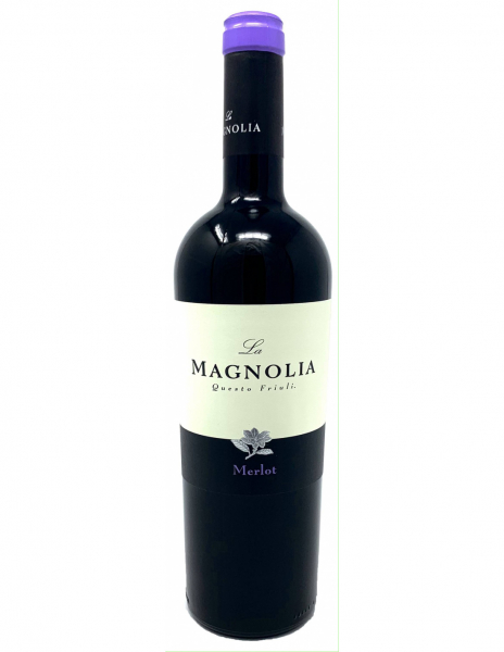 Vino Merlot La Magnolia cl 75 al naso profumi di lampone e frutti di bosco al palato strutturato asciutto dai tannini vellutati finale leggermente erbaceo ottimo con arrosto di vitello coniglio carni rosse e formaggi stagionati
