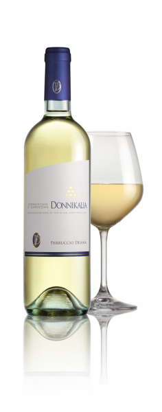 Vino Vermentino Donnikalia Ferruccio Deiana cl 75 profumo con sentori di frutta gialla retrogusto che ricorda la mandorla amara ottimo come aperitivo e con piatti a base pesce crostacei carni bianche
