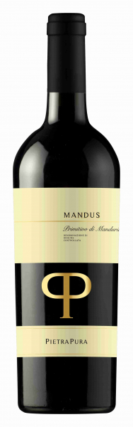 Vino Primitivo di Manduria Mandus Pietrapura cl 75 da uve selezionate della zona del Salento buona struttura con profumi ampi di ciliegie mature e prugne ottimo con piatti a base carne