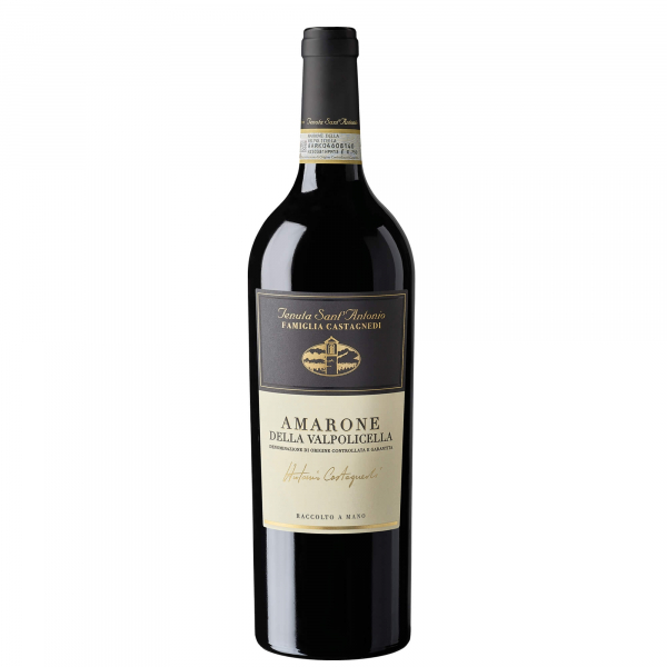 Amarone Castagnedi Tenuta Sant'Antonio cl 75 dai tannini rotondi gusto sapido fine, affinato 2 anni in botti di rovere francese gusto dalla trama tannica mordiba e perfetto con selvaggina piatti con tartufo e carni rosse