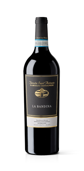 Valpolicella Superiore La Bandina S. Antonio cl 75 gusto fresco con le tipiche note balsamiche date dal terroir , liquirizia, menta , china e frutta rossa adatto a primi piatti con carne, arrosti , carne alla griglia