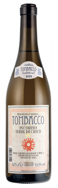 Vino Pecorino Terre di Chieti Tombacco cl 75 colore giallo paglierino intenso al naso bouquet di frutti bianchi gusto acido e minerale ottimo con risotti pesce al forno e molluschi